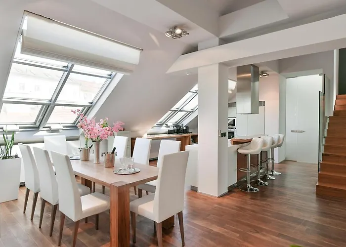 El apartamento está situado en la parte antigua de Praga, justo al lado de la estación de metro Můstek. El apartamento Luxury Central Penthouse With Sauna, Terrace, 250M2, 5Bdrm, 3Bthrm está a 2 km del centro de Praga. El Museo Nacional y el Centro comercial Palladium están a tan solo 1 km.